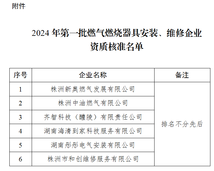 株洲市住房和城乡建设局关于2024年第一批核准的燃气燃烧器具安装、维修企业资质的公告