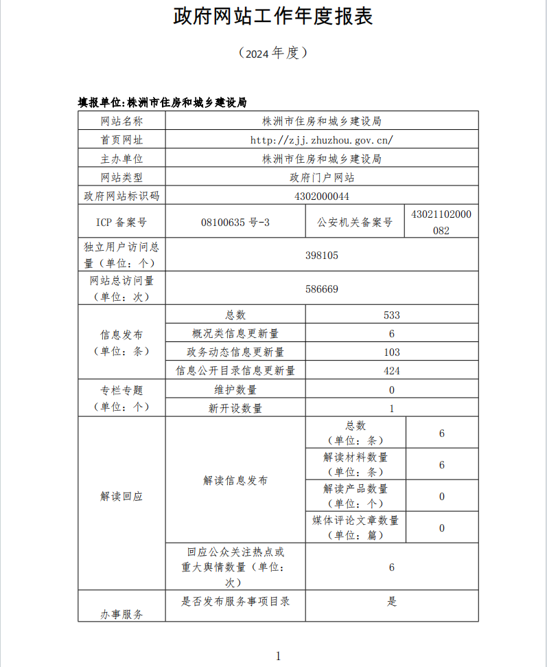 株洲市住房和城乡建设局政府网站工作2024年度报表